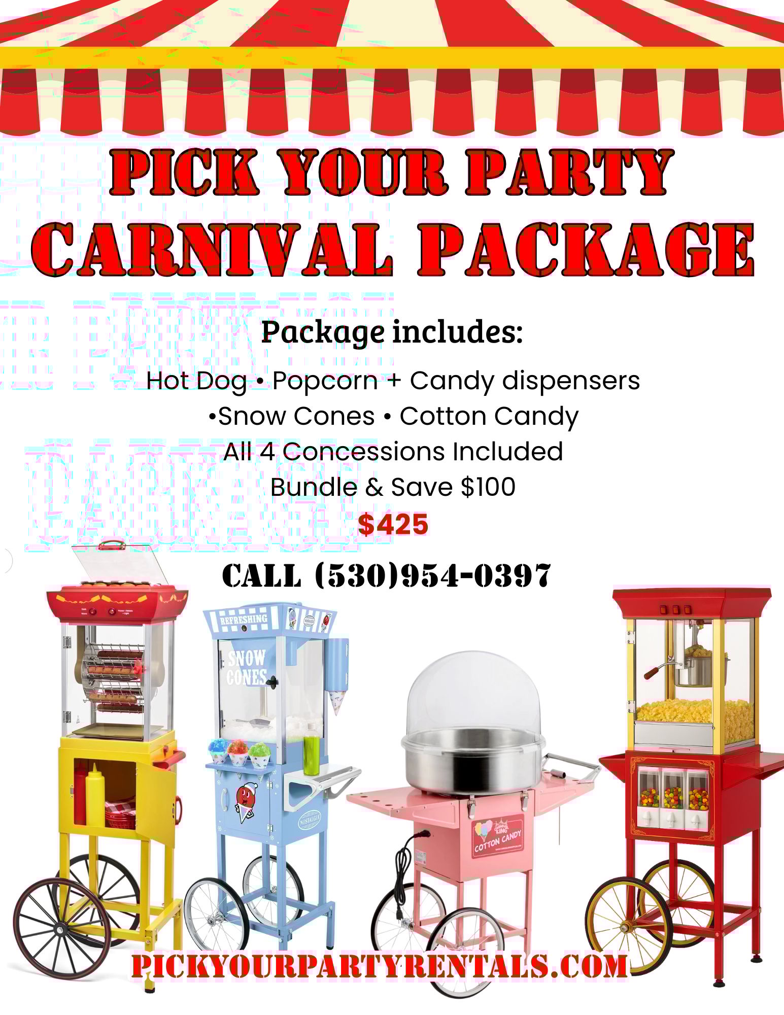 Ask us about additional hours, themed props, or add-ons like champagne stations and throne chair. We also rent out concession stands for popcorn, cotton candy, snow cones & crafted lemonades!