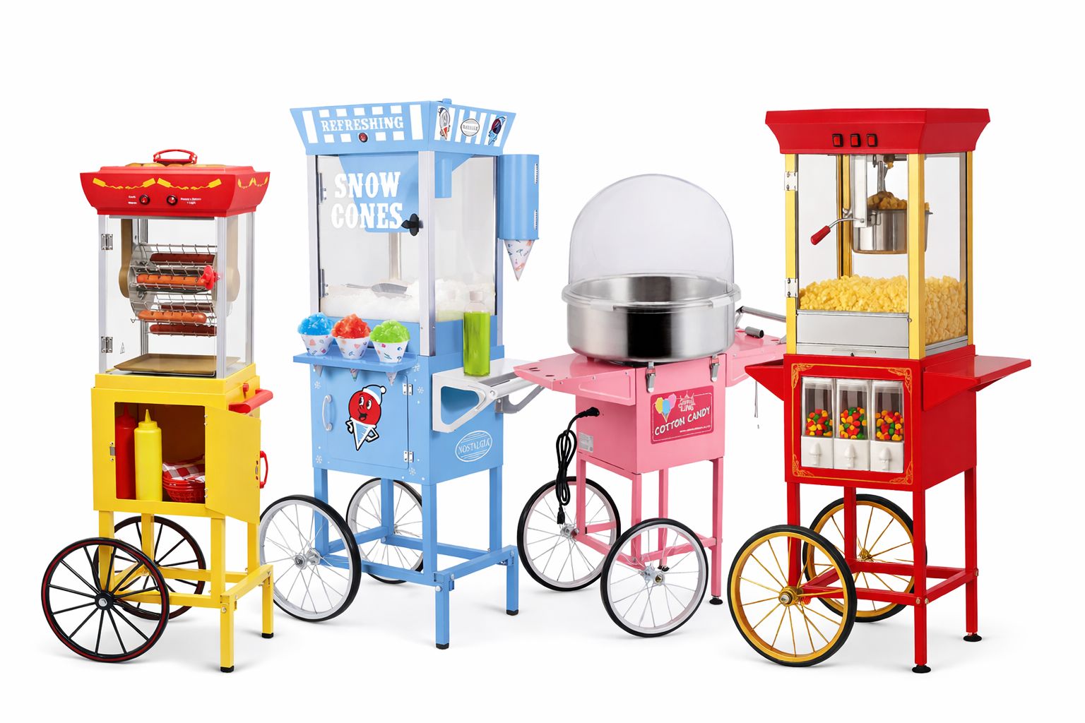 Absolutely! We can add or remove equipment to your liking, add theme colors, candy types, signage, and more.