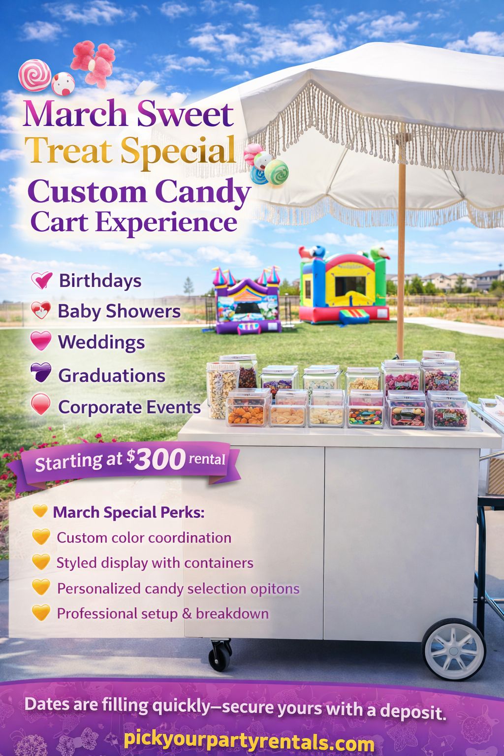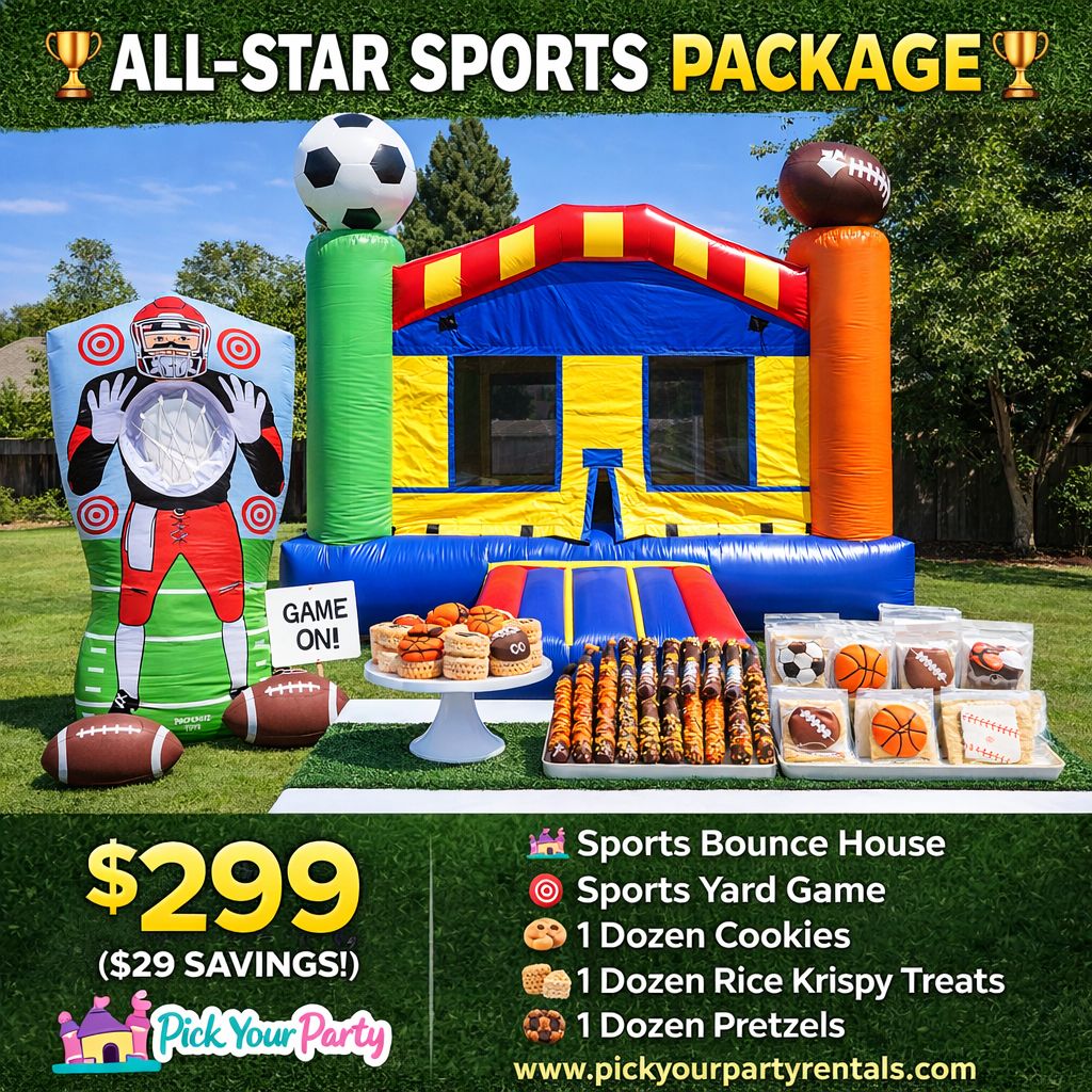 From Bounce houses and toddler soft-play setups to interactive mirror photo booths, custom mobile food and beverage bars, and elegant add-ons, Pick Your Party brings style, fun, and convenience right to your event.