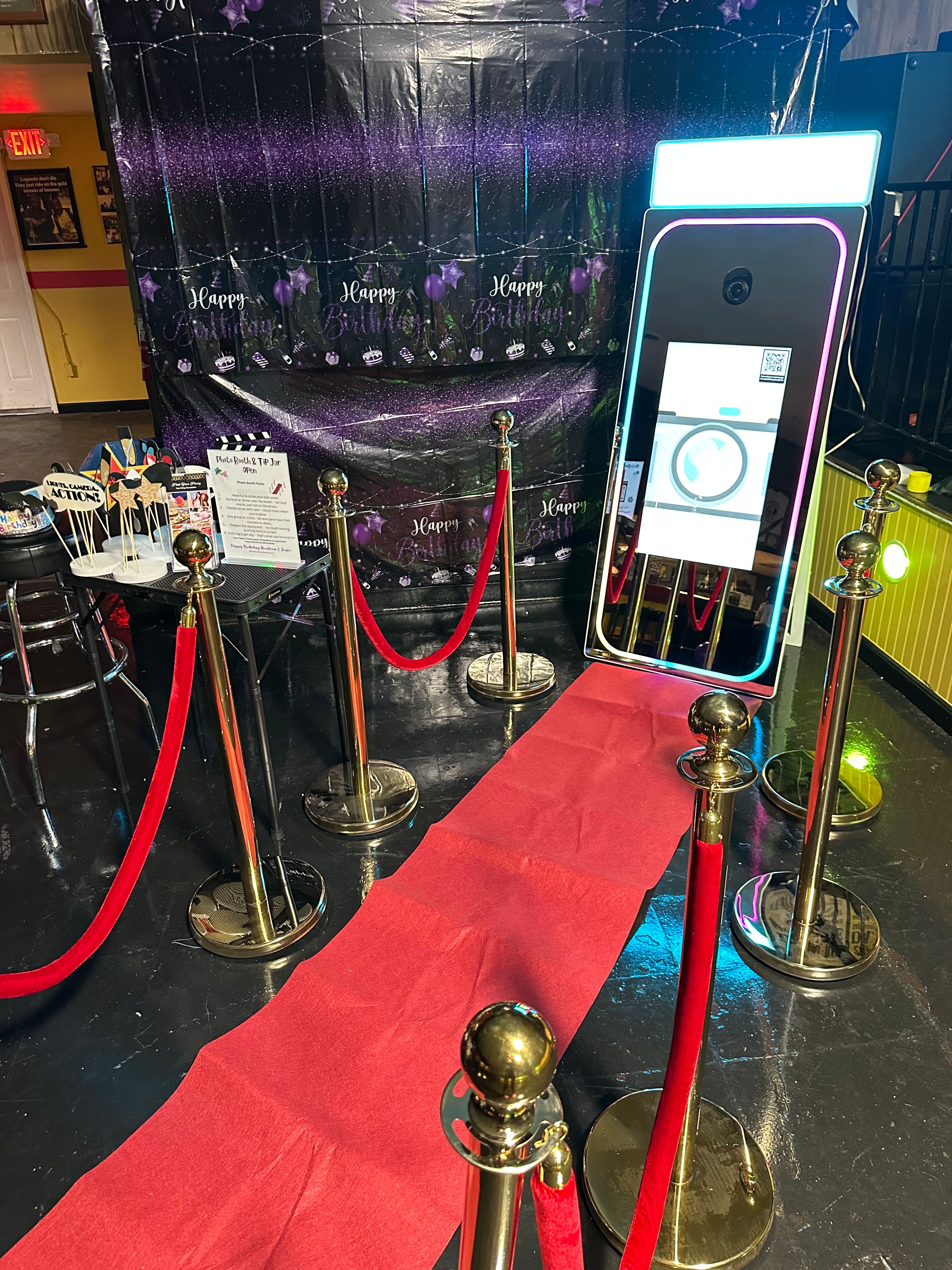 The Mirror Photo Booth was the highlight of our event! Everyone from the kids to the grandparents had a blast taking photos with all the fun props. The setup was elegant, the attendant was so friendly, and the custom photo template made our dad's retirement party feel so special. Thank you, Pick Your Party!