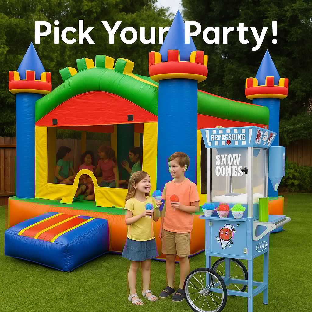 Pick Your Party, a woman owned, family operated party rental business dedicated to bringing joy, fun, and ease to your celebrations. With clean, new bounce houses, creative snack bars, and photo booths, we help you make memories while we handle the setup and breakdown. At Pick Your Party, we make parties stress-free and unforgettable by providing: